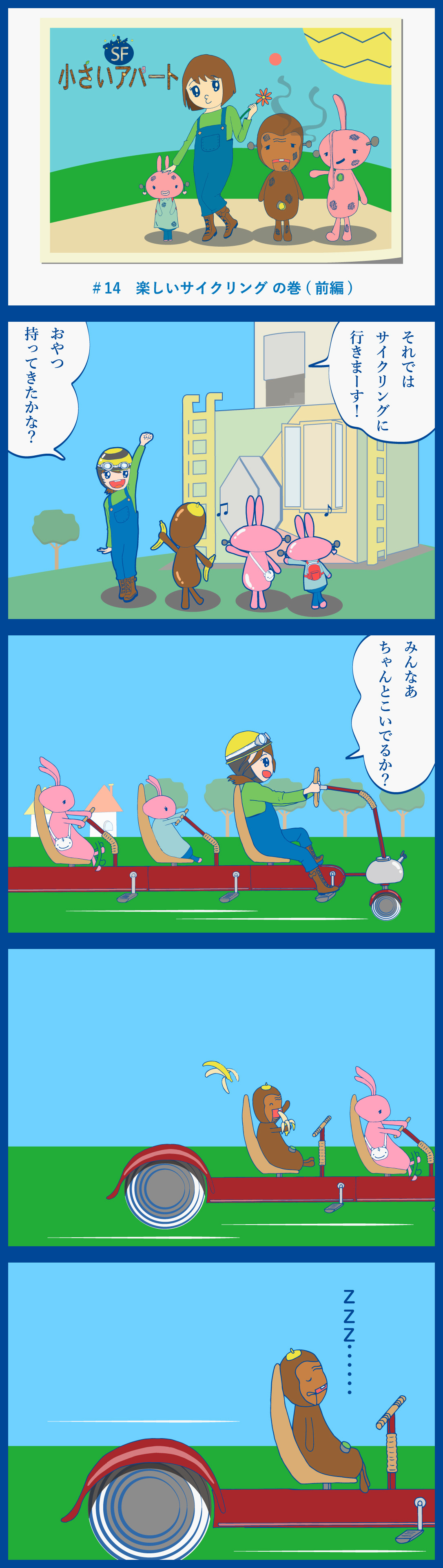 2018年05月06日 楽しいサイクリング の巻 前編 後編 (4コマ漫画 SF小さいアパート #14) 楽しいサイクリング の巻 前編 後編 (4コマ漫画 SF小さいアパート #14)※画像はクリックで拡大します。一話から見る場合はこの文字をクリックしてください。#14 楽しいサイクリング の巻 完 タグ :#SF小さいアパート